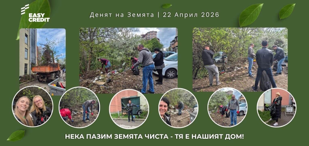 По повод Деня на Земята 22 април, Изи Кредит организира доброволческа инициатива за почистване на района около Централния офис на Дружеството, находящ се в Търговско-административен комплекс „Силвър Център“ в гр. София.