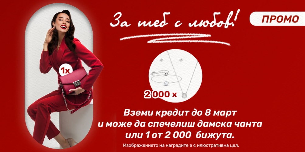 Всеки клиент, усвоил кредит в наш офис, в периода от 4-ти до 8-ми март 2026 г., получава скреч карта и автоматично участва в теглене за голямата награда. А победителят ще бъде изтеглен и обявен на 9-ти март.